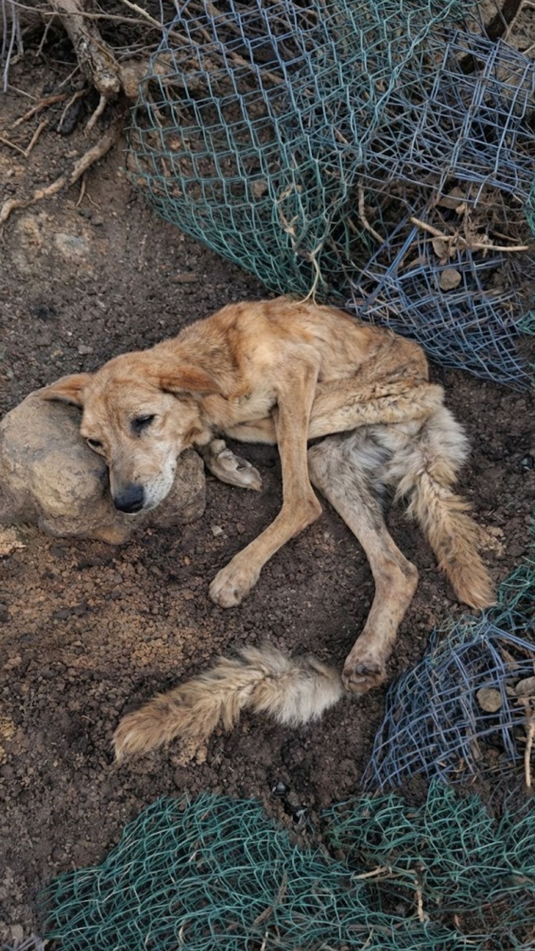 Her skin stretched tightly over sharp bones. Her legs had grown too weak to hold her body upright. Her eyes no longer held hope—only a quiet, heartbreaking question.