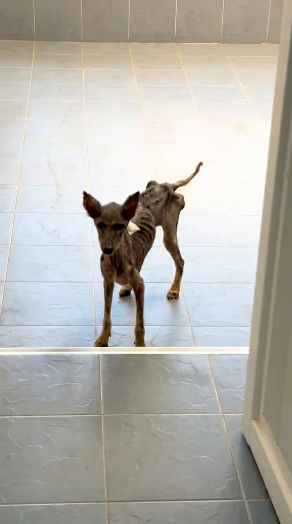 Her bones pressed sharply beneath her skin. Her fur was almost gone. Ticks and fleas covered her fragile body. Open sores dotted her skin.