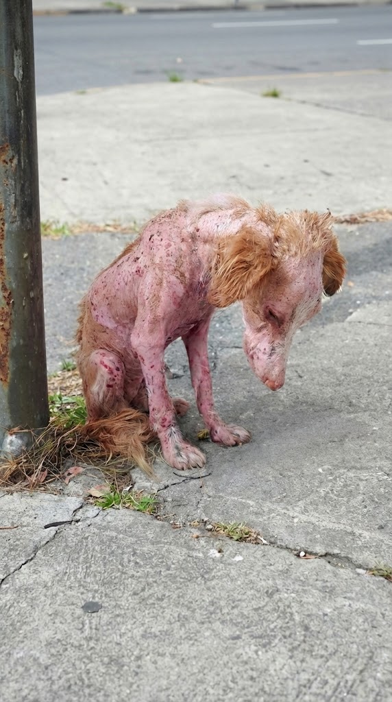 She was found beside a rusted dumpster, trembling in the cold. From a distance, she didn’t even resemble a dog — just a fragile frame wrapped in patchy, worn fur.