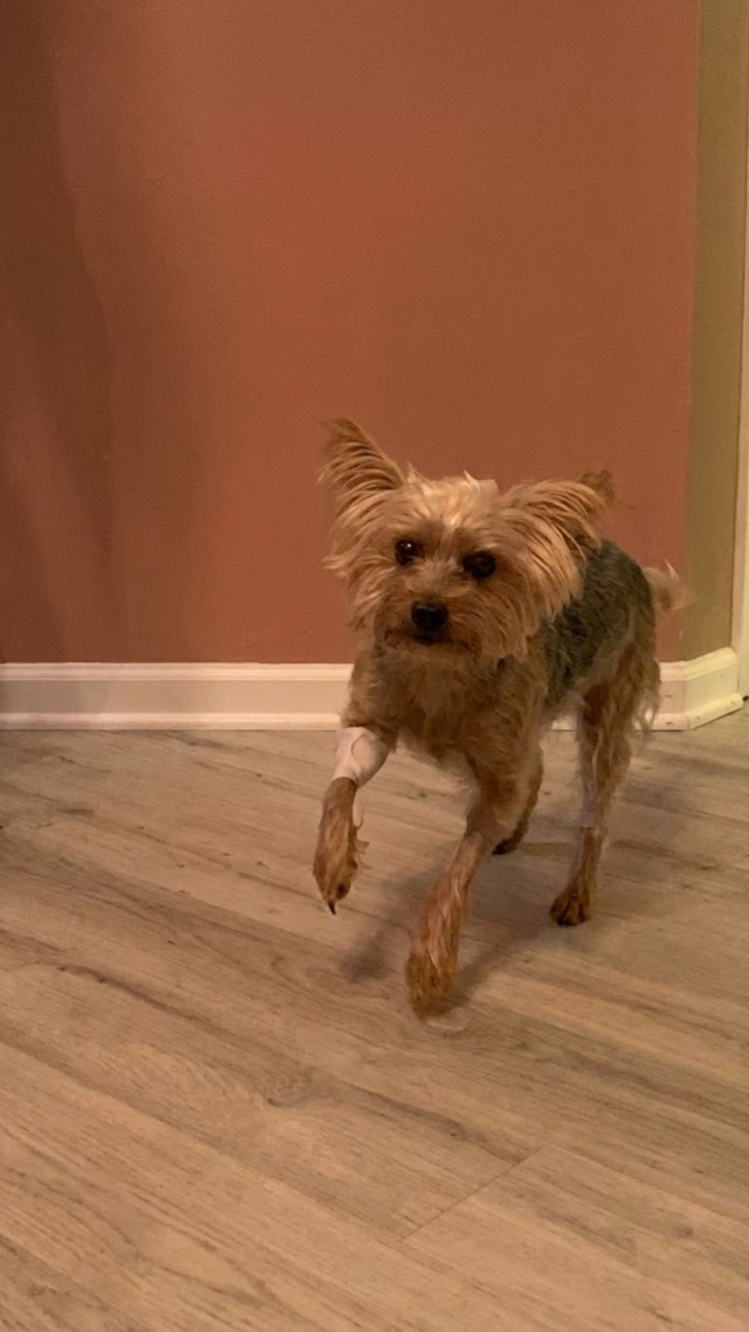 Even after being shot, the little Yorkie continued barking and lunging, refusing to let the men concentrate long enough to chase the girl.
