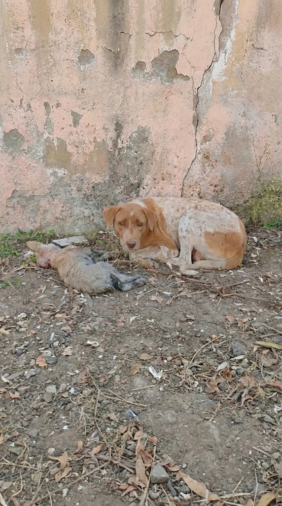 Traffic noise faded into the distance. Voices blurred together. What remained was a single, heartbreaking scene—a thin mother dog lying on the cool ground beside her motionless puppy.