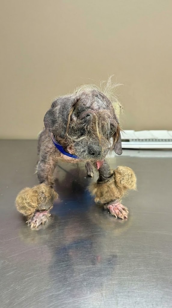 The woman brought the small dog—now named Freddy—to a local shelter, where the veterinary team assessed his condition.