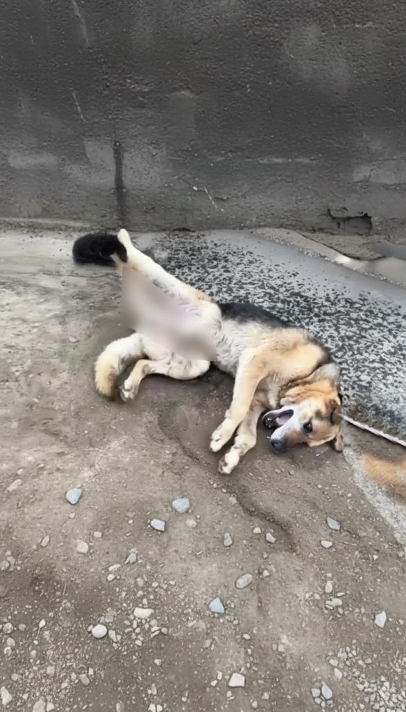On a lonely stretch of road, where no one expected to find life still clinging on, a broken dog lay in silence.