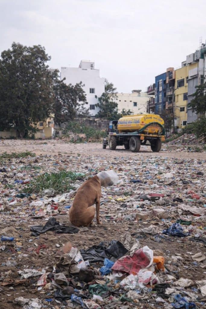 A stray dog, trapped in a space that gave him no room to move forward… and no way to go back.
