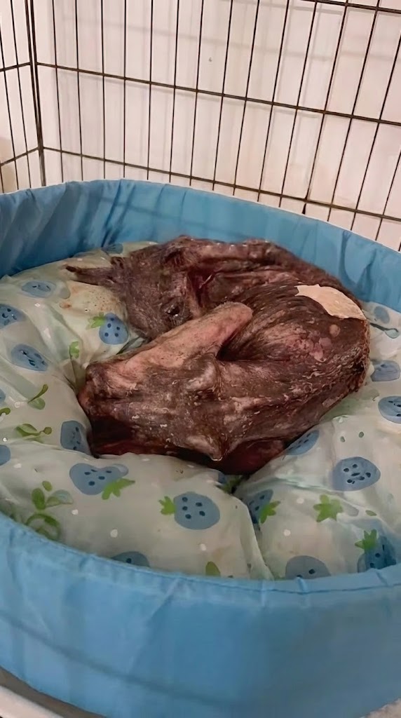 Just soft, broken sounds that filled the quiet room. Her body trembled as it tried to rest without fear. The rescuers stayed close, sitting beside her, speaking gently, letting her know—again and again—that she was no longer alone.
