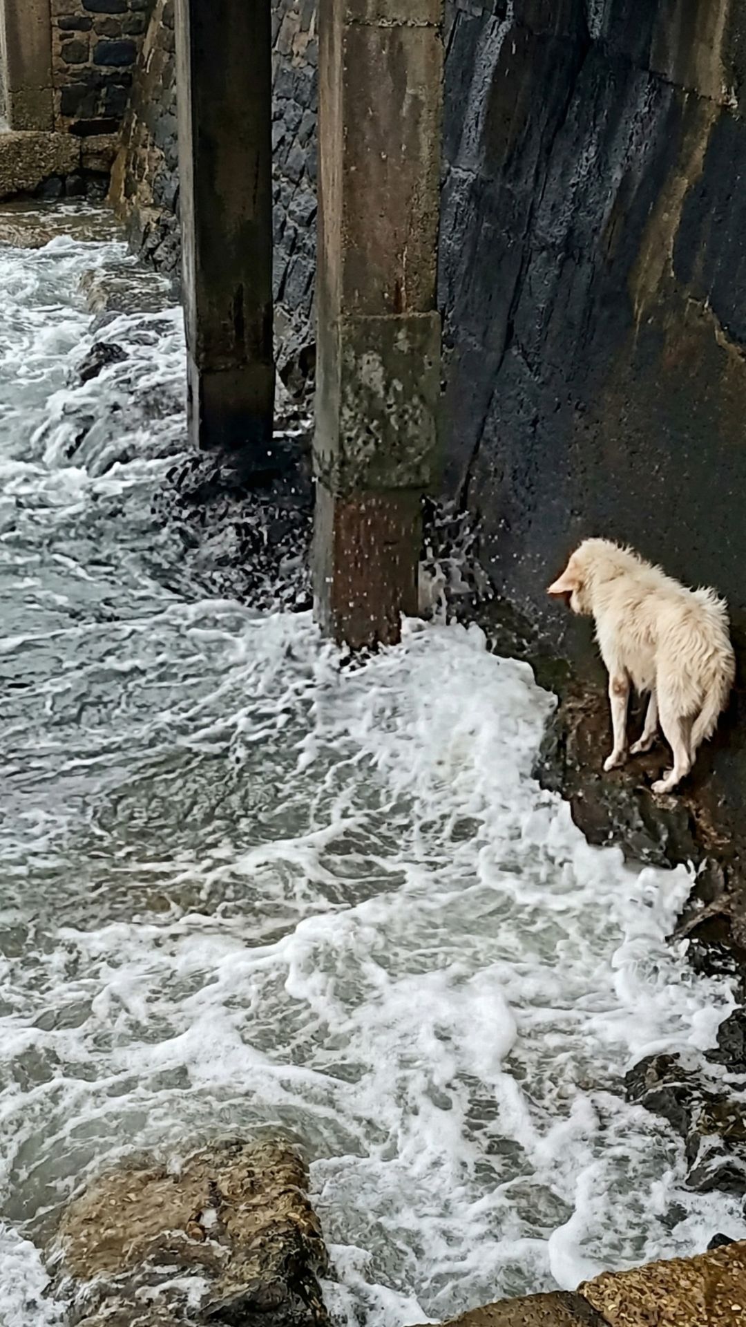 Months later, that same dog is no longer standing alone against the waves.