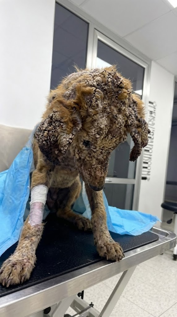 Her body was wrapped in thick, painful crusts from a severe skin disease, but it was her eyes that told the real story. When she saw us, she didn’t bark or run. She lowered her head completely, shrinking into herself, as if trying to disappear. She looked less like a dog and more like a child who had lost all sense of direction—and all hope that anyone would come.