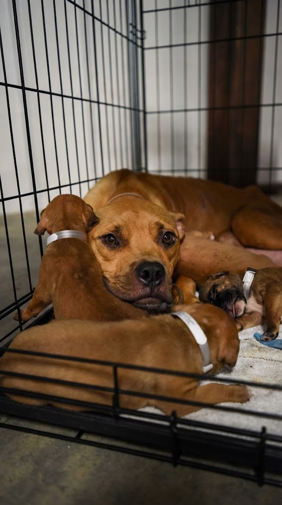 Abilene and her puppies now walk under clear skies in Los Angeles—far from the mud, chemicals, and fear they once knew. They are safe. Healthy. Surrounded by people who see their worth.
