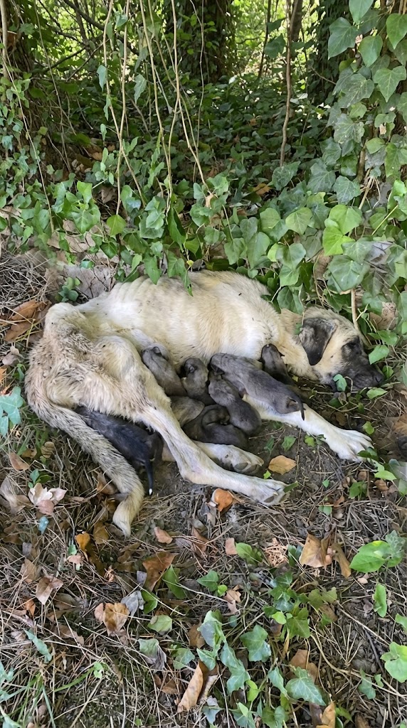 She was found curled protectively around ten newborn puppies, her thin body trembling with exhaustion. What should have been a moment of warmth and rest was instead a desperate fight for survival. Ida was severely malnourished — ribs sharply visible, energy nearly gone — yet she was still trying to keep ten fragile lives alive with a body that was failing her.