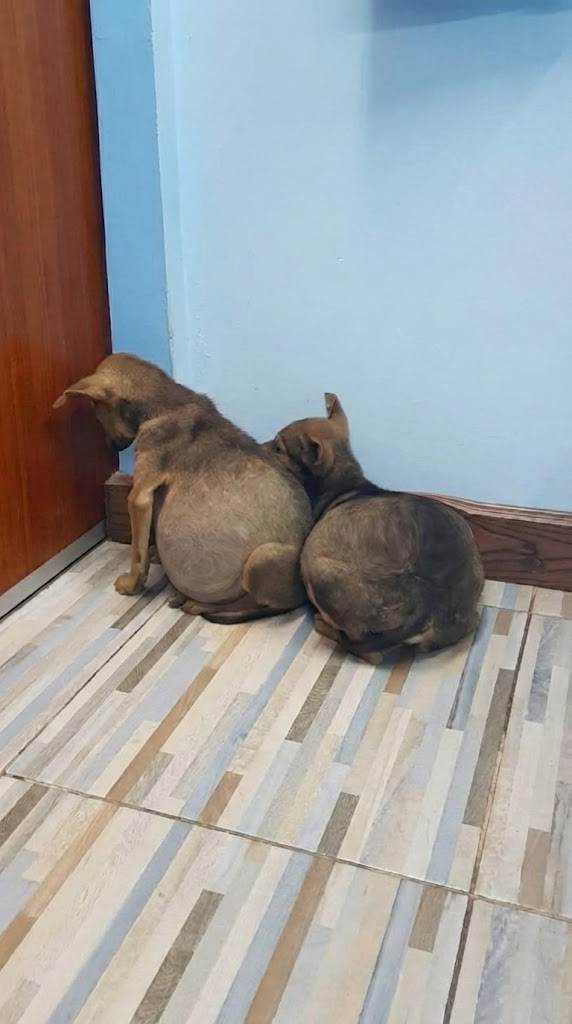 Two small puppies lay helpless on the street, their bellies grotesquely swollen, stretched tight and heavy like stones inside their bodies. They tried to move — but couldn’t. The weight pulled them back down every time.