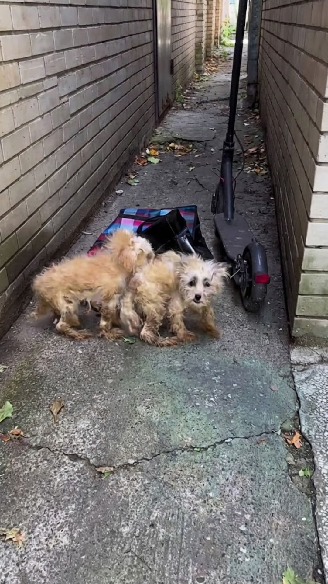 From a distance, they didn’t even look like dogs. They looked like clumps of tangled fur mixed with dirt and debris. Two tiny bodies pressed together, trying to disappear from the world around them.