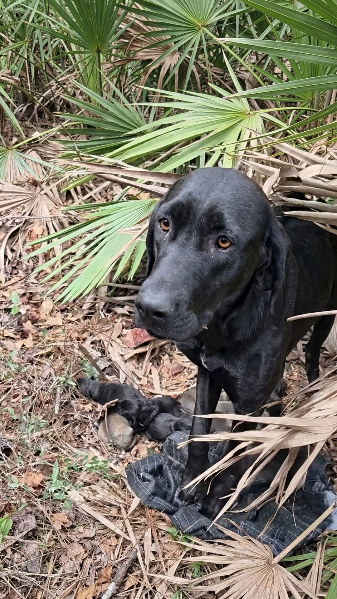 A black Lab… barely alive.