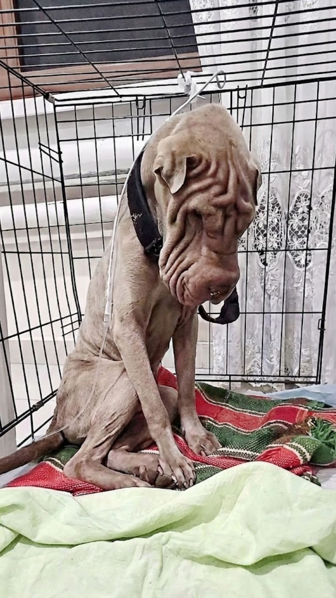 His body was so thin that every rib pressed against my palm. His fur was dull. His eyes didn’t search for kindness — they avoided it.