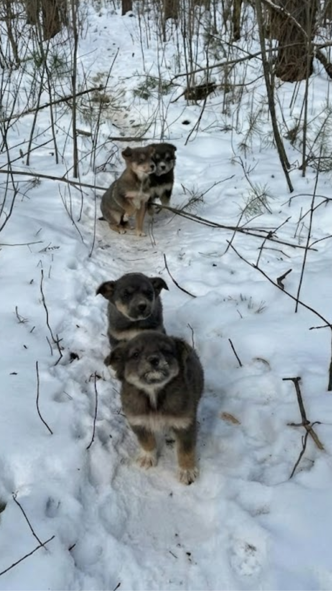 VIDEO: Desperate Puppies Line Up in the Snow Searching for Their Missing Mom
