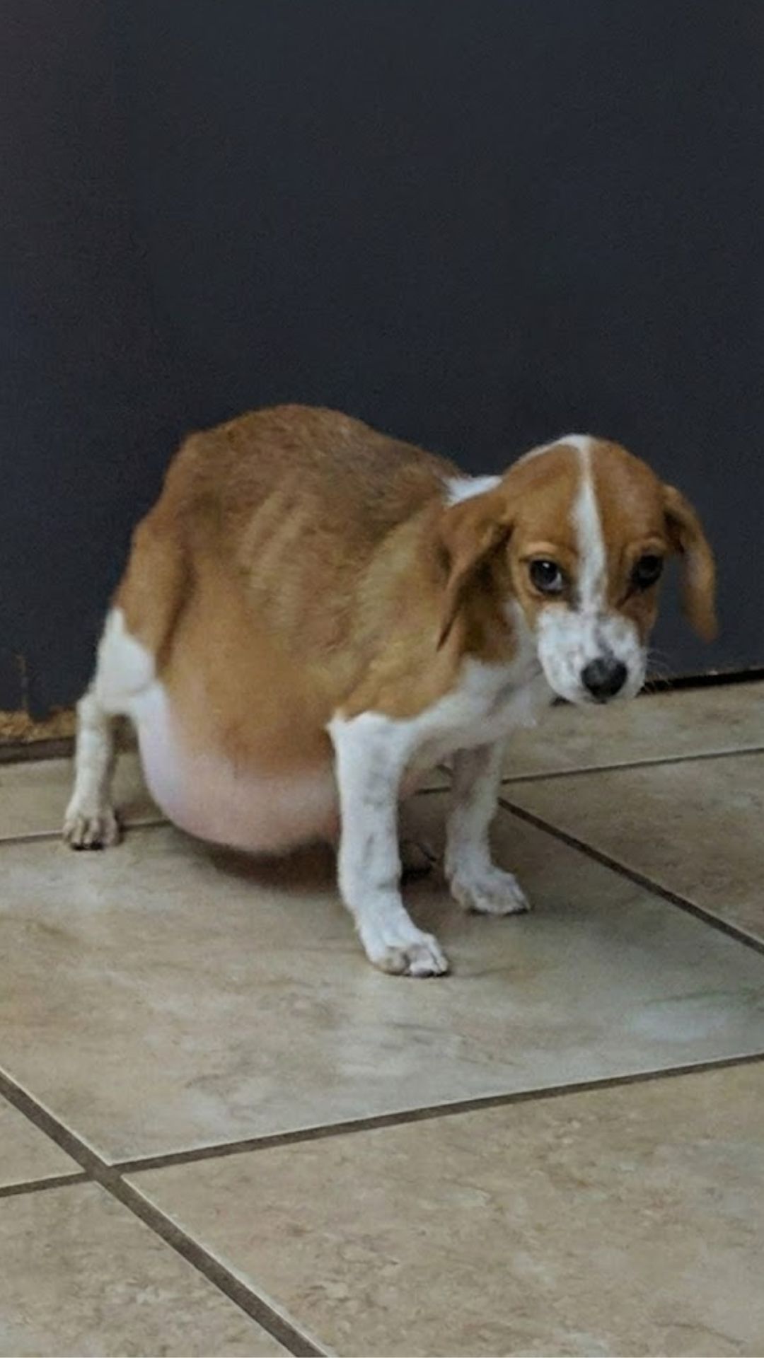 Her stomach was enormous, stretched tight and round like a balloon. The swelling pulled against her fragile body, forcing her tiny legs to struggle under the weight.