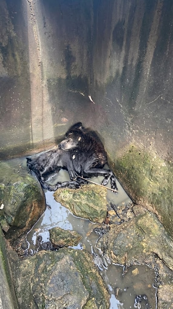 Down inside the sewer, soaked and shivering, was a dog barely clinging to consciousness.