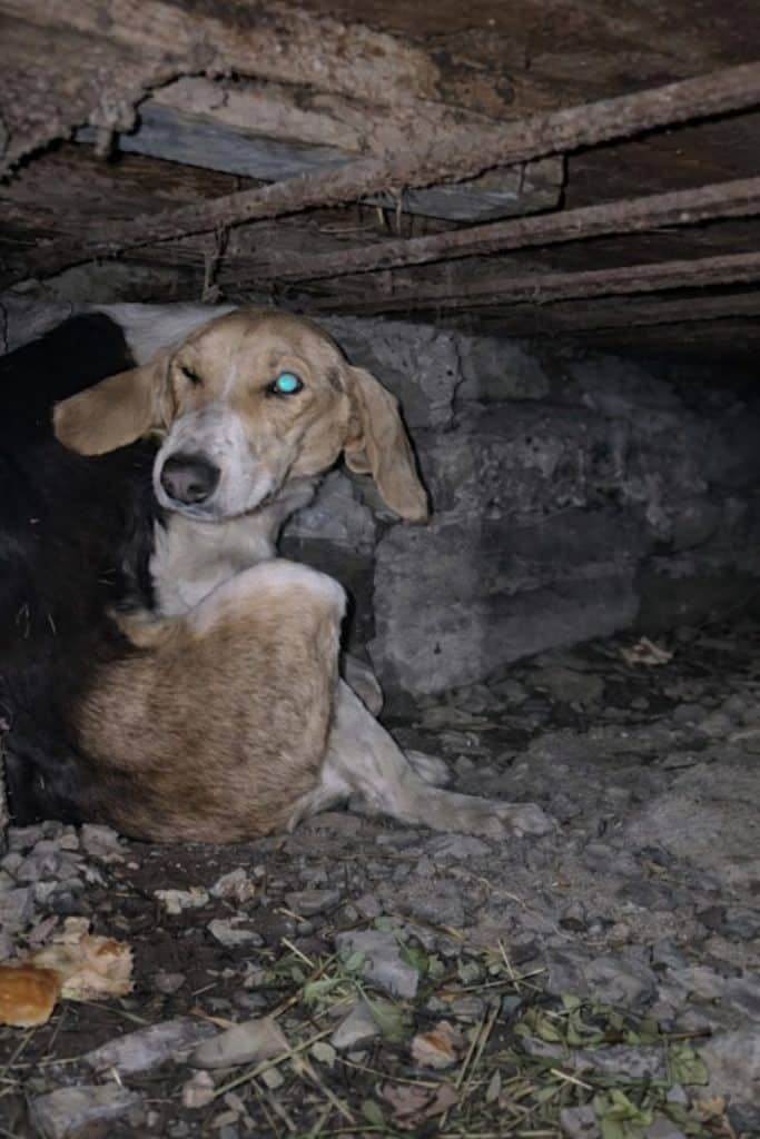 Just a small, injured dog in a dark place—