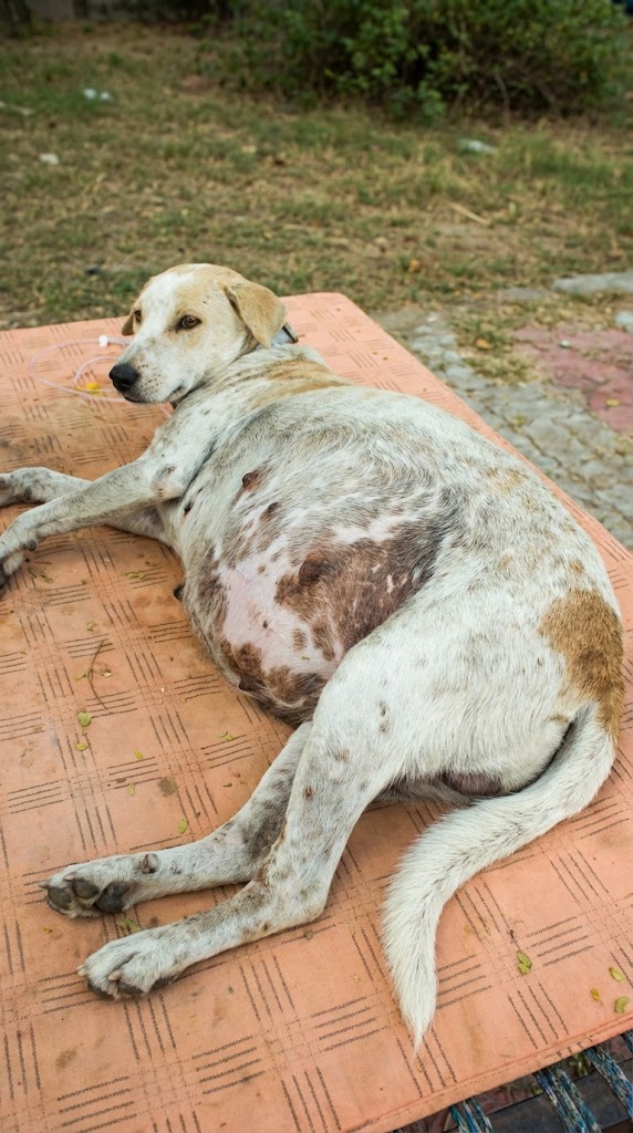 Sushi’s stomach was so enlarged it touched the ground. She still tried to eat and drink, unaware that each swallow made the pressure inside her worse. Walking was no longer possible. Standing was exhausting.