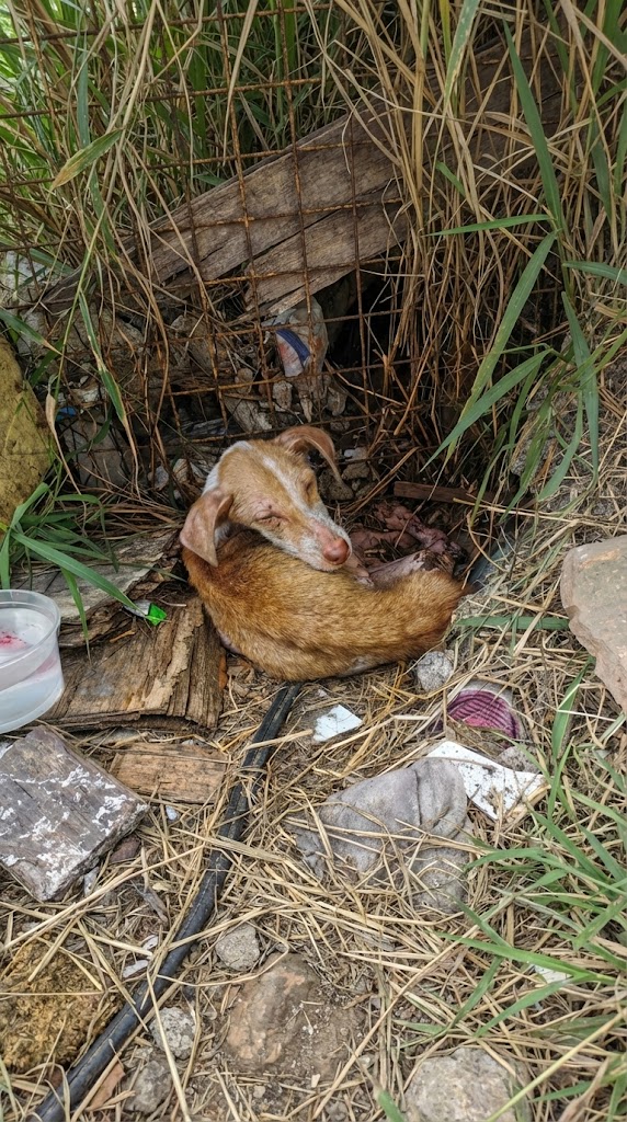 I found him curled beneath a towering billboard, pressed against the dust as if trying to become part of it. He looked like a broken toy left behind—too weak to cry, too tired to move. Just skin, bones, and a life slipping away quietly.